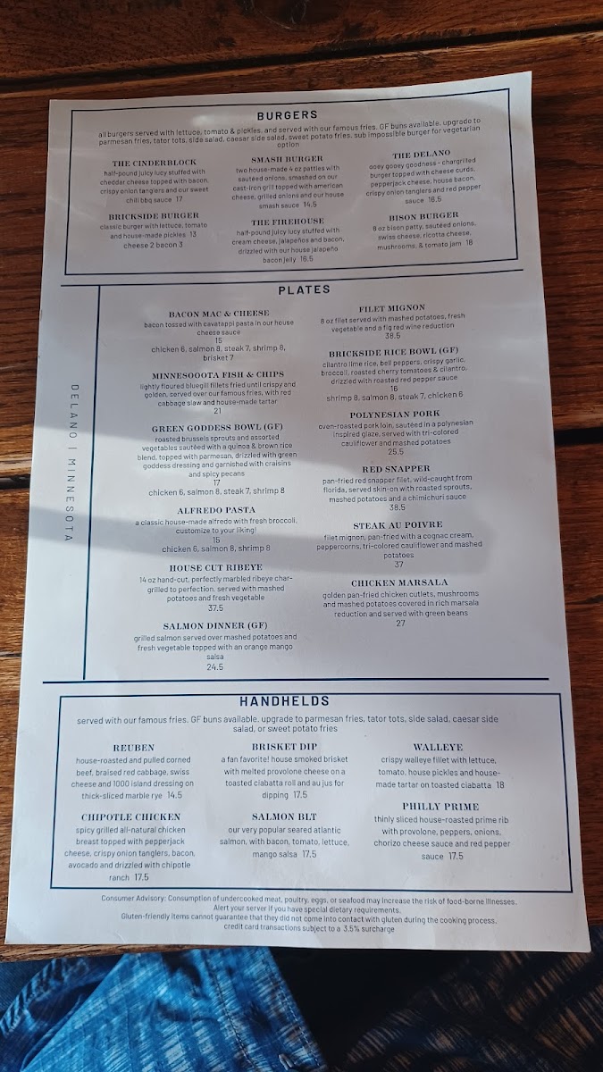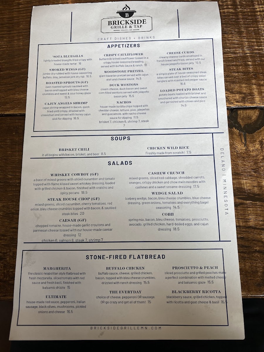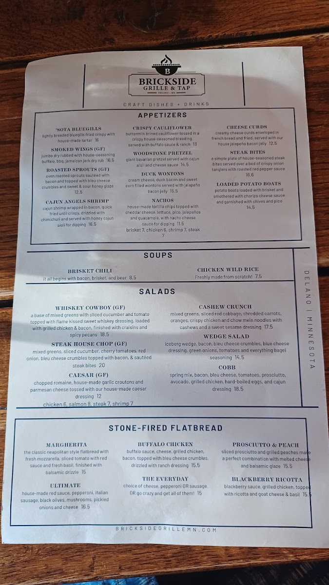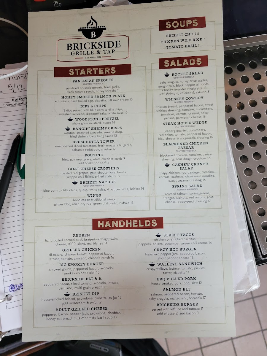 Welcome to Brickside Grille & Tap, a culinary gem nestled in the heart of Delano, Minnesota. This vibrant spot combines a welcoming atmosphere with a menu filled with mouthwatering options. From delectable handhelds like the savory Brisket Dip and the delightful Walleye Sandwich to an enticing range of burgers including the irresistible Ultimate Bacon Cheeseburger, there's something for everyone.