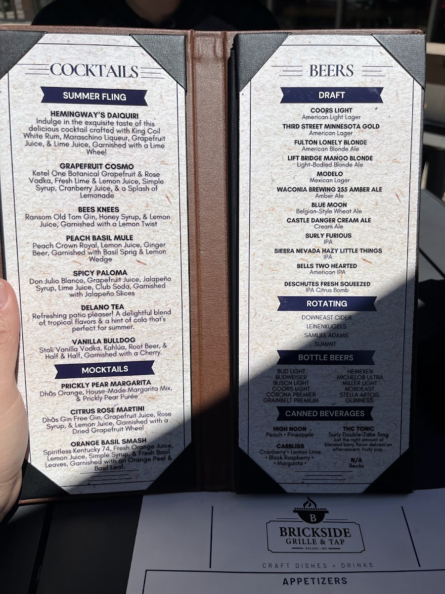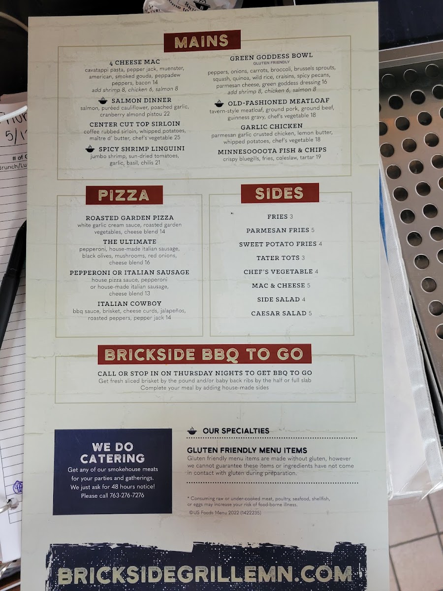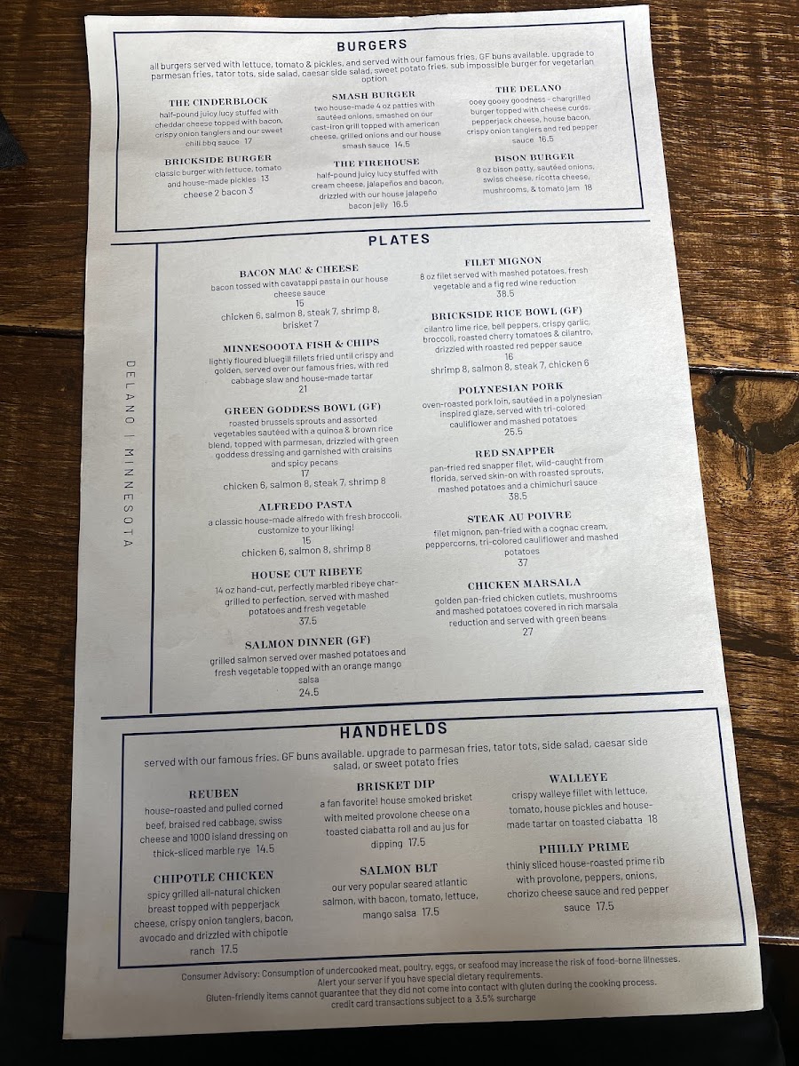 Welcome to Brickside Grille & Tap, a culinary gem nestled in the heart of Delano, Minnesota. This vibrant spot combines a welcoming atmosphere with a menu filled with mouthwatering options. From delectable handhelds like the savory Brisket Dip and the delightful Walleye Sandwich to an enticing range of burgers including the irresistible Ultimate Bacon Cheeseburger, there's something for everyone.